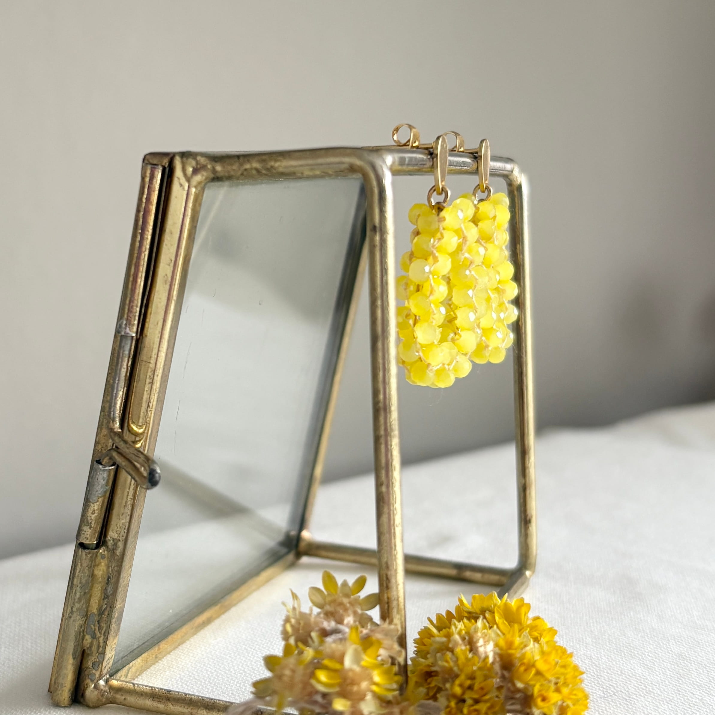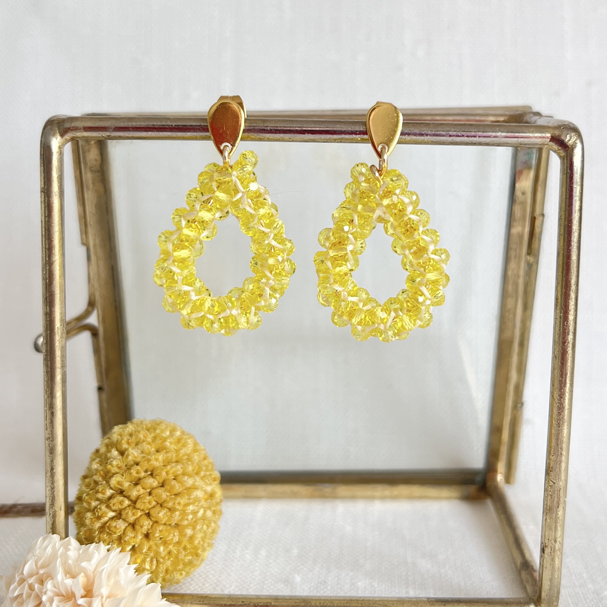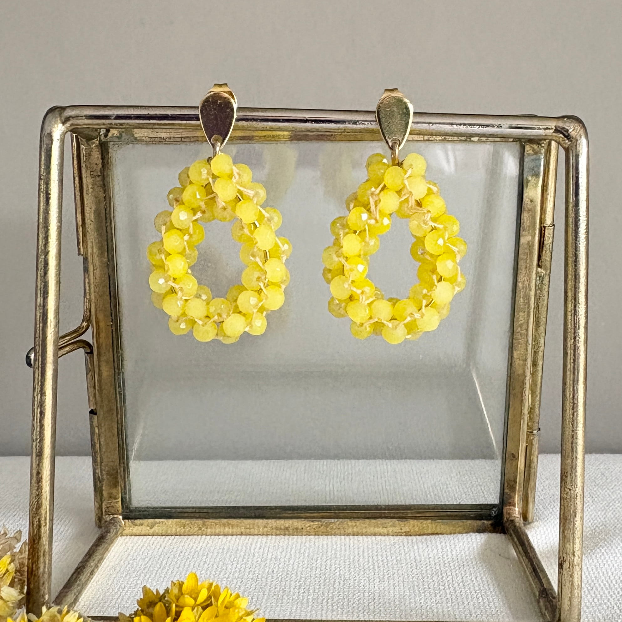 Wees de eerste om “Gele oorbellen in druppelvorm met matte facet kraaltjes L3 cm” te beoordelen