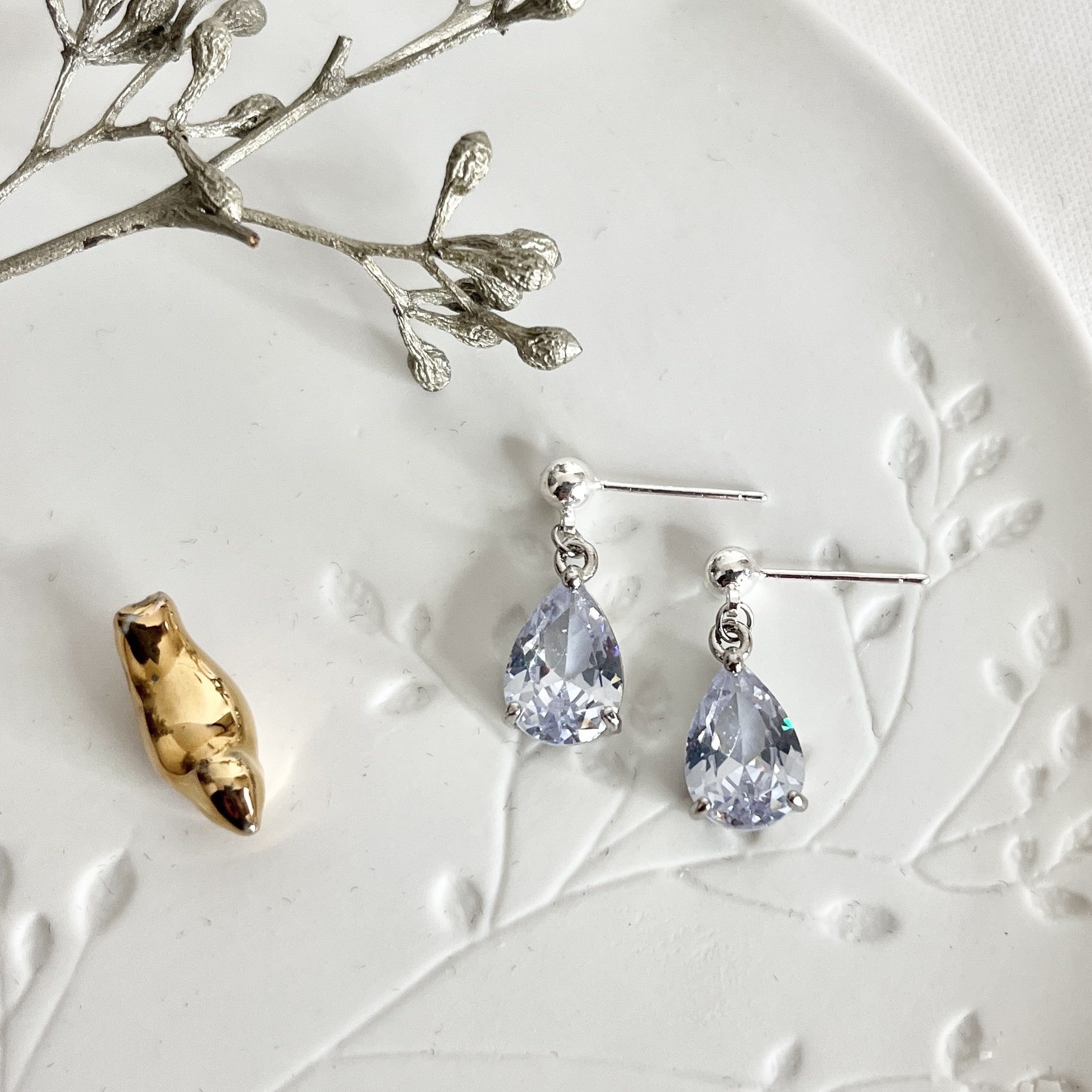 Ik gebruik materialen die bestaan uit roestvrij stalen (RVS) oorstekers of oorhangers in een gouden of zilveren kleur. Dit is geen echt zilver of goud, maar wordt omschreven bijvoorbeeld als ‘gouden open RVS oorstekers’ of ‘zilveren RVS ring’.