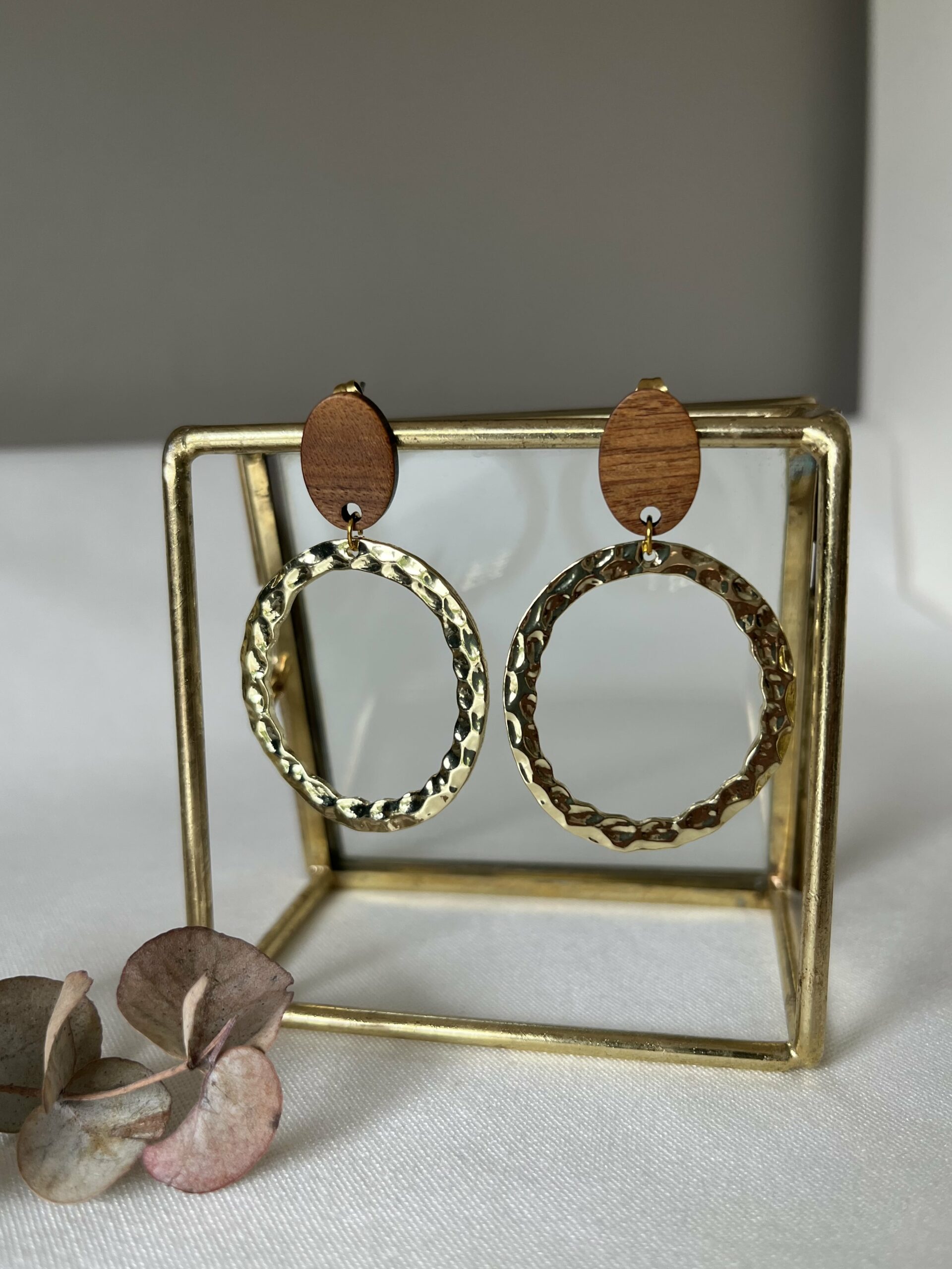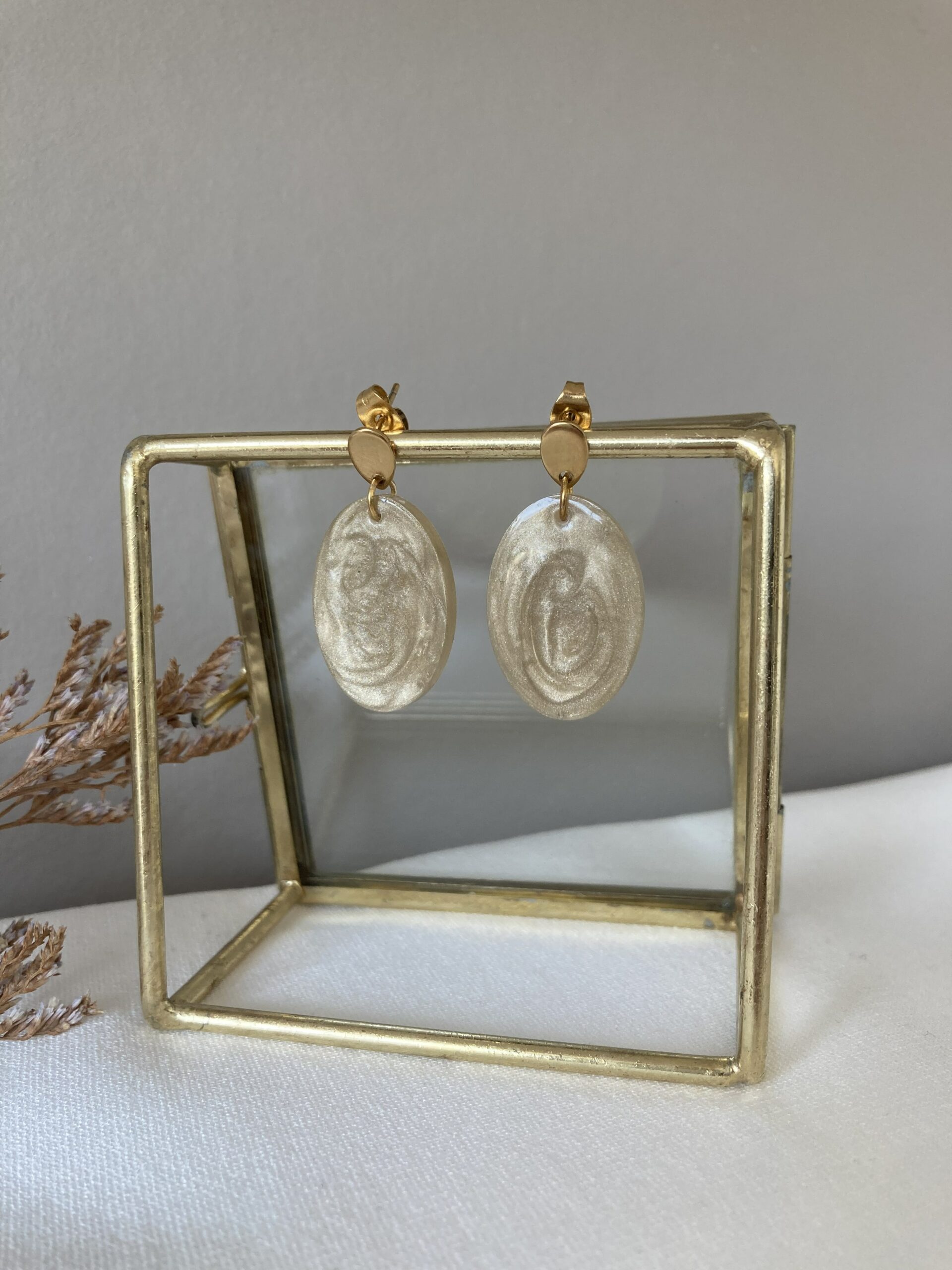 Ik gebruik materialen die bestaan uit roestvrij stalen (RVS) oorstekers of oorhangers in een gouden of zilveren kleur. Dit is geen echt zilver of goud, maar wordt omschreven bijvoorbeeld als ‘gouden open RVS oorstekers’ of ‘zilveren RVS ring’.