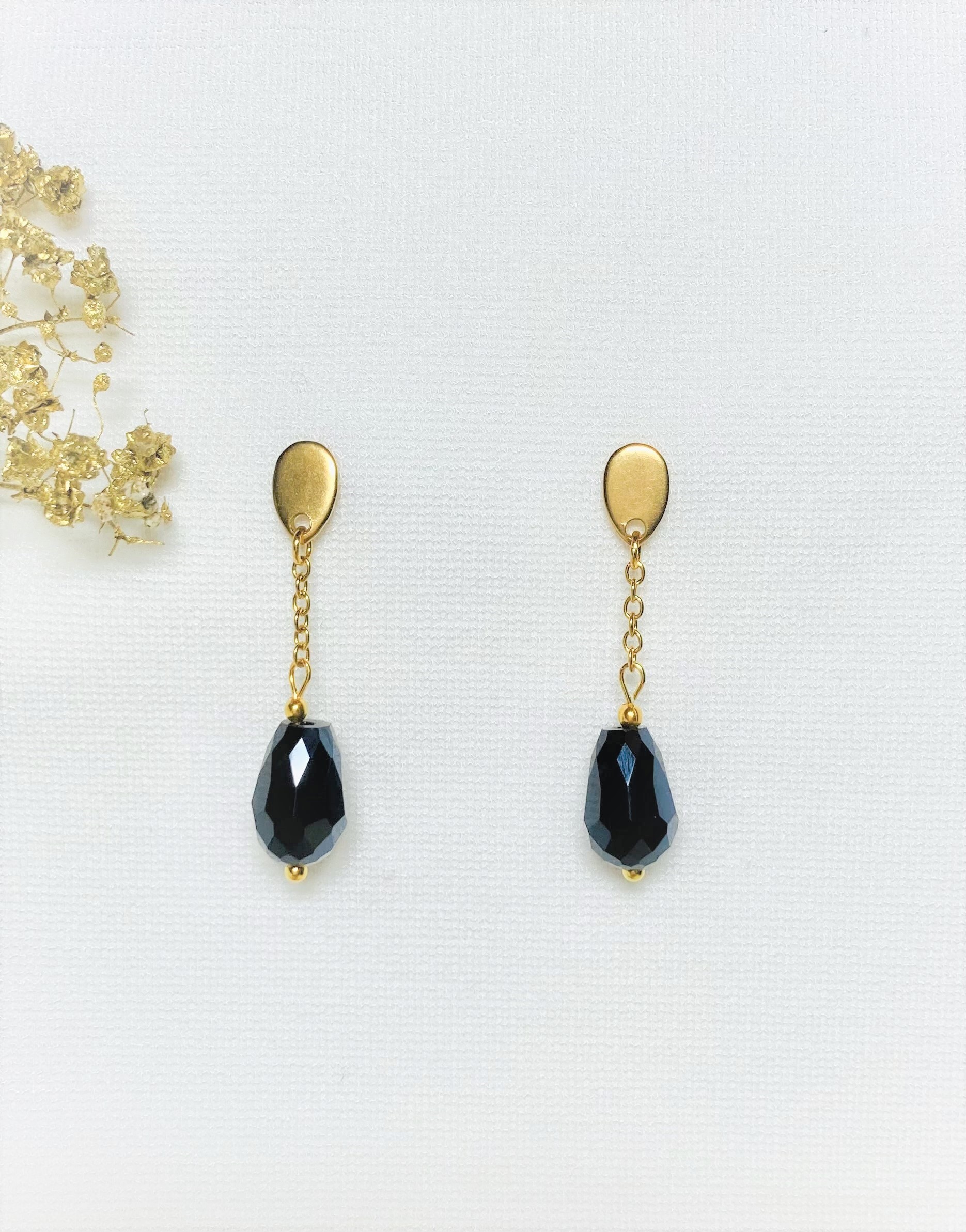 Wil je show stelen met je outfit? Dat doe je echt met deze oorbellen van RVS gouden oorstekers en een RVS gouden kettinkje en een gouden geribbelde kraal. De oorbel is helemaal af met de facetgeslepen midnight blue glasdruppel. Lichtgewicht en 6 cm lang. Korter of langer? Geef dan in het vak ‘Opmerkingen’ de gewenste lengte aan. Speciaal op maat gemaakte artikelen kunnen niet geretourneerd of geruild worden.