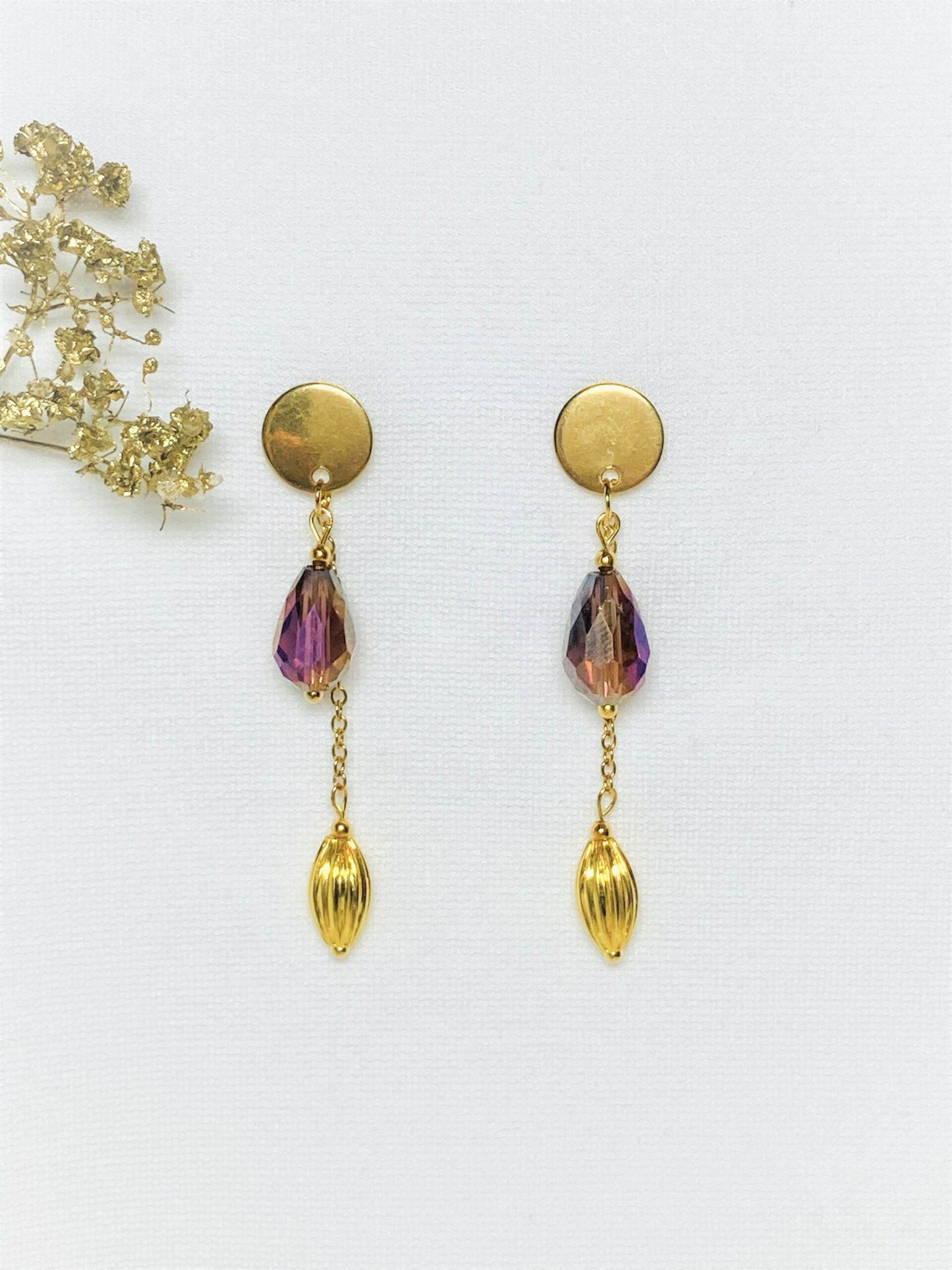 Ik gebruik materialen die bestaan uit roestvrij stalen (RVS) oorstekers of oorhangers in een gouden of zilveren kleur. Dit is geen echt zilver of goud, maar wordt omschreven bijvoorbeeld als ‘gouden open RVS oorstekers’ of ‘zilveren RVS ring’.