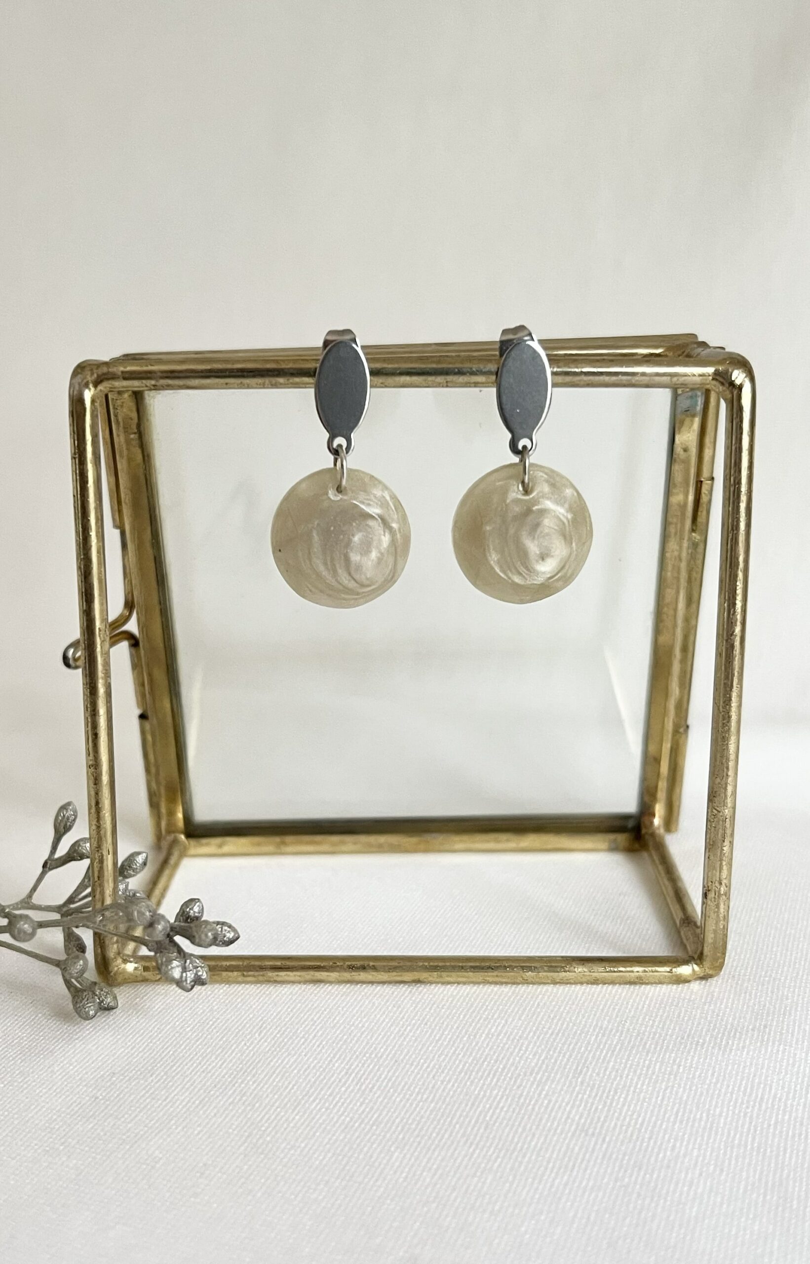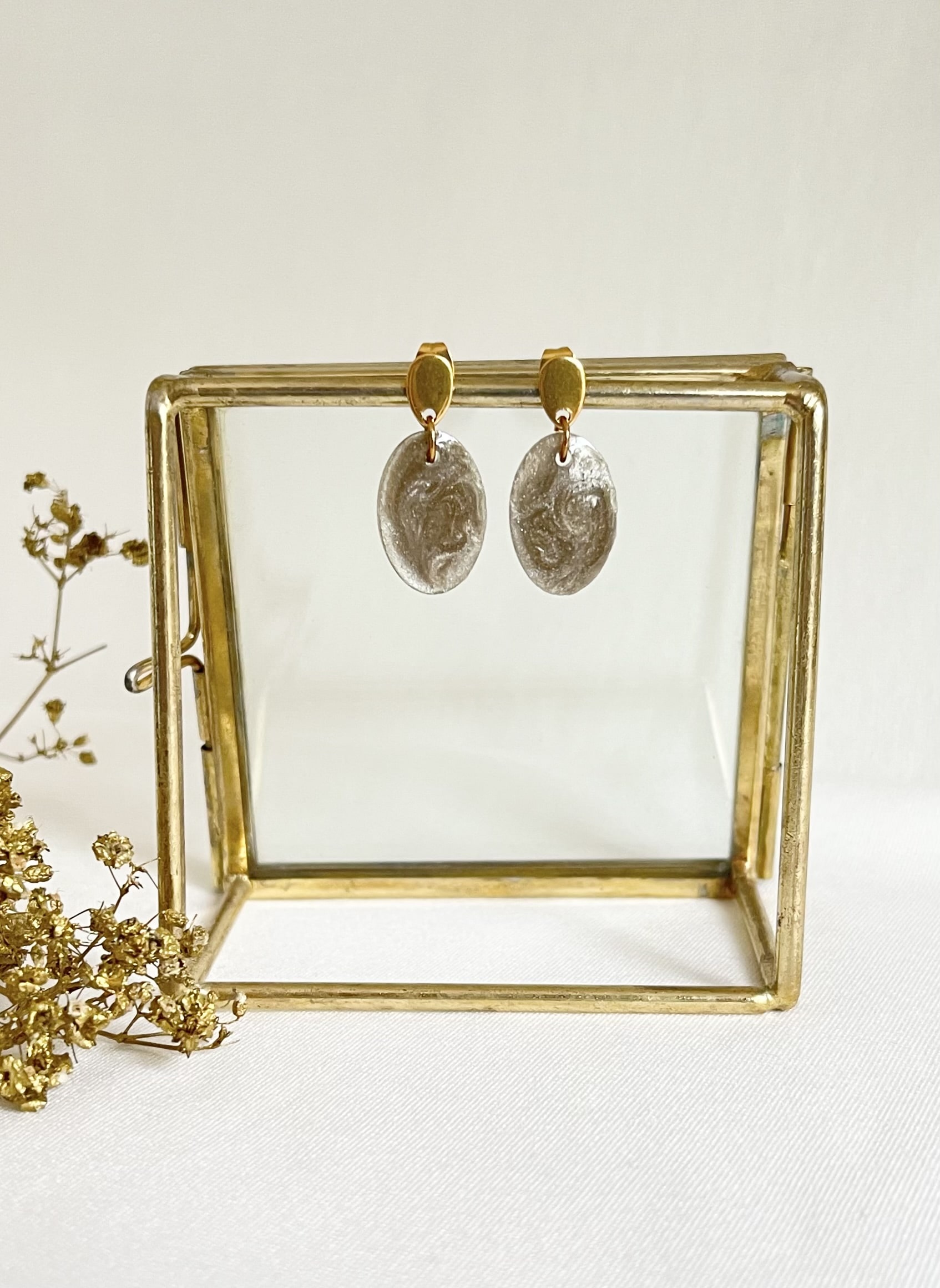 Als je van naturel tinten houdt, dan zijn deze zandkleurige naturel oorbellen onmisbaar in je garderobe. Subtiele ovale, strakke oorbellen van resin met zilveren RVS oorstekers. Ze zijn licht van gewicht en hebben de mooie lengte van 2,5 cm.