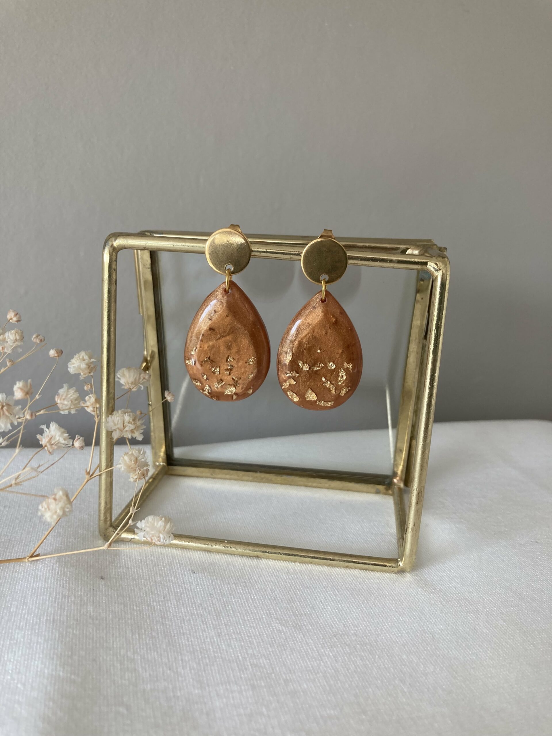 Oorbellen van resin met facetvlakken in een mooie roestbruine bronzen kleur