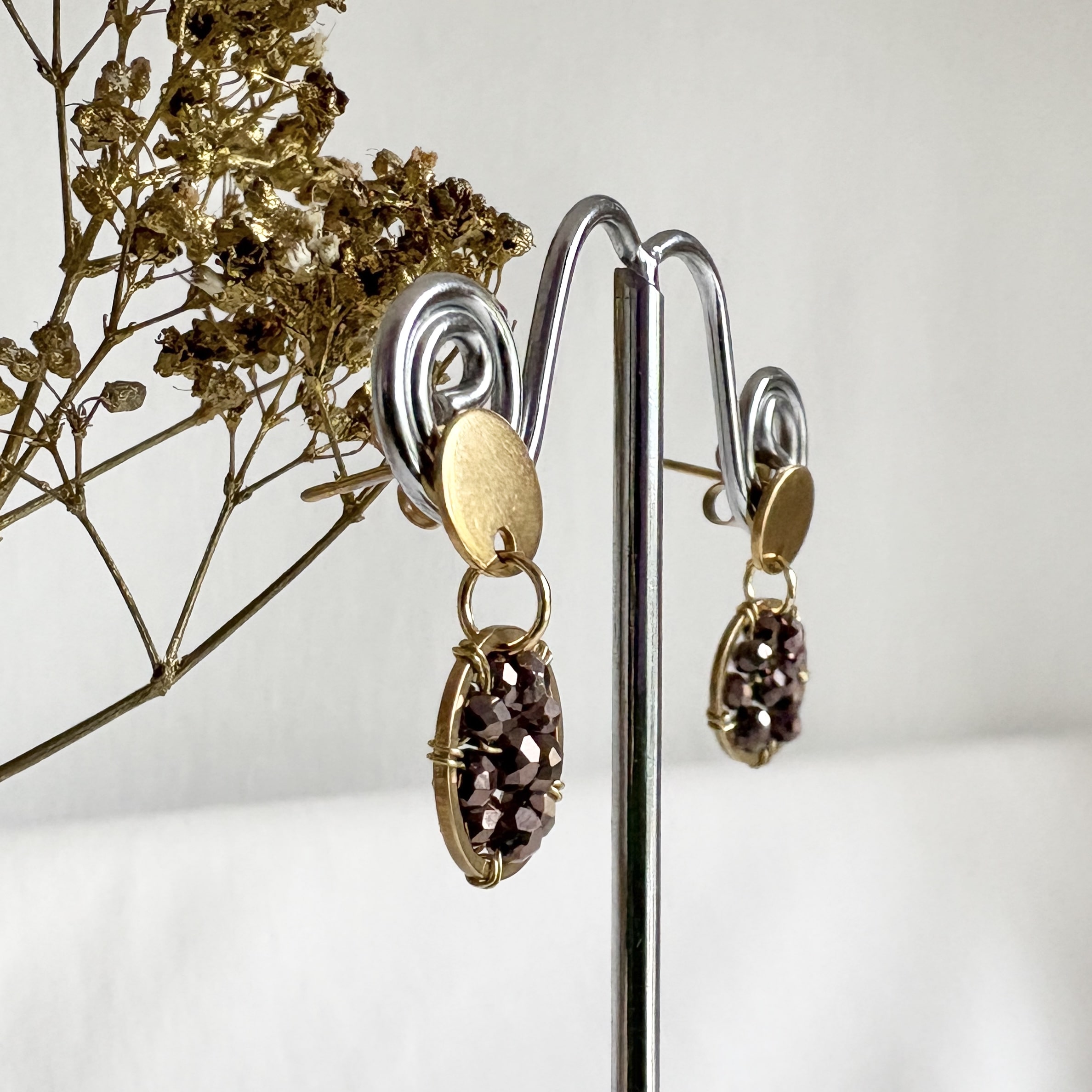 Een mooie combinatie: brons en goud. Deze ronde bronzen bruine facet oorbellen zijn leuk van formaat – de totale lengte is 2 cm – en door de mooie warme kleur van de bronzen bruine facet geslepen kraaltjes krijgen ze een feestelijke uitstraling! De kraaltjes zijn met de hand geregen aan een ronde gouden RVS ring en de hangertjes hangen aan gouden RVS oorknopjes. De oorbellen zijn licht van gewicht.