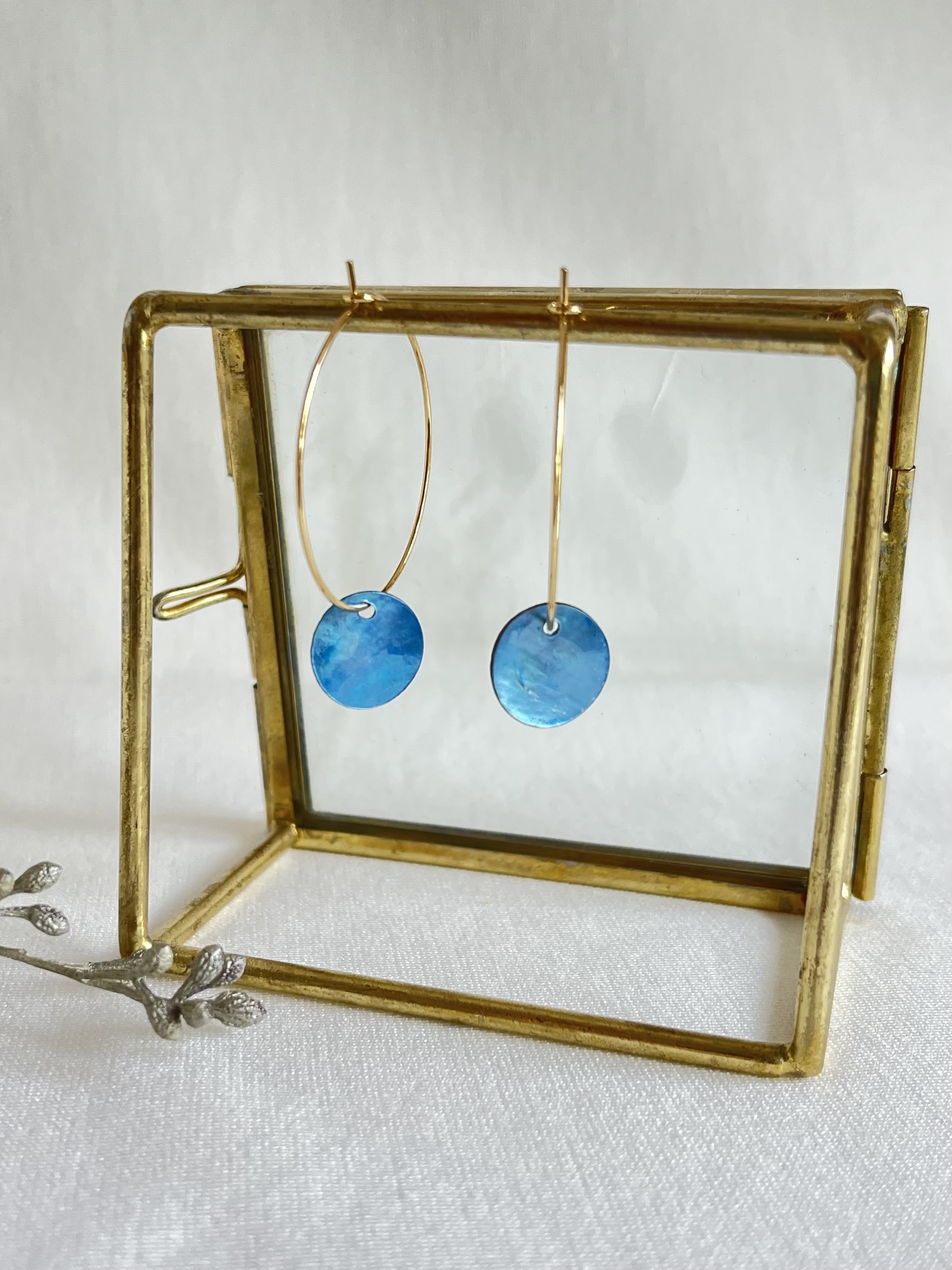 Ik gebruik materialen die bestaan uit roestvrij stalen (RVS) oorstekers of oorhangers in een gouden of zilveren kleur. Dit is geen echt zilver of goud, maar wordt omschreven bijvoorbeeld als ‘gouden open RVS oorstekers’ of ‘zilveren RVS ring’.