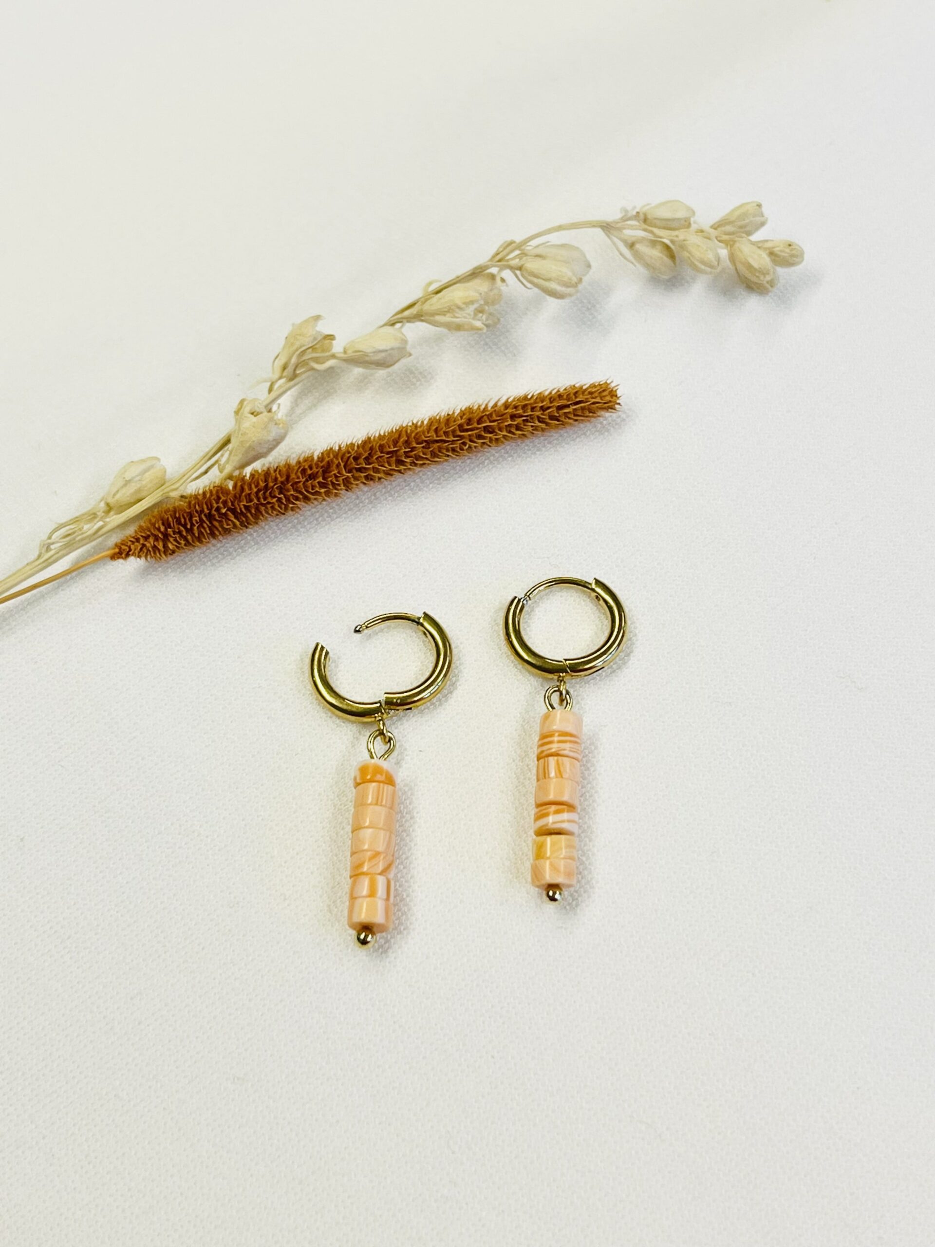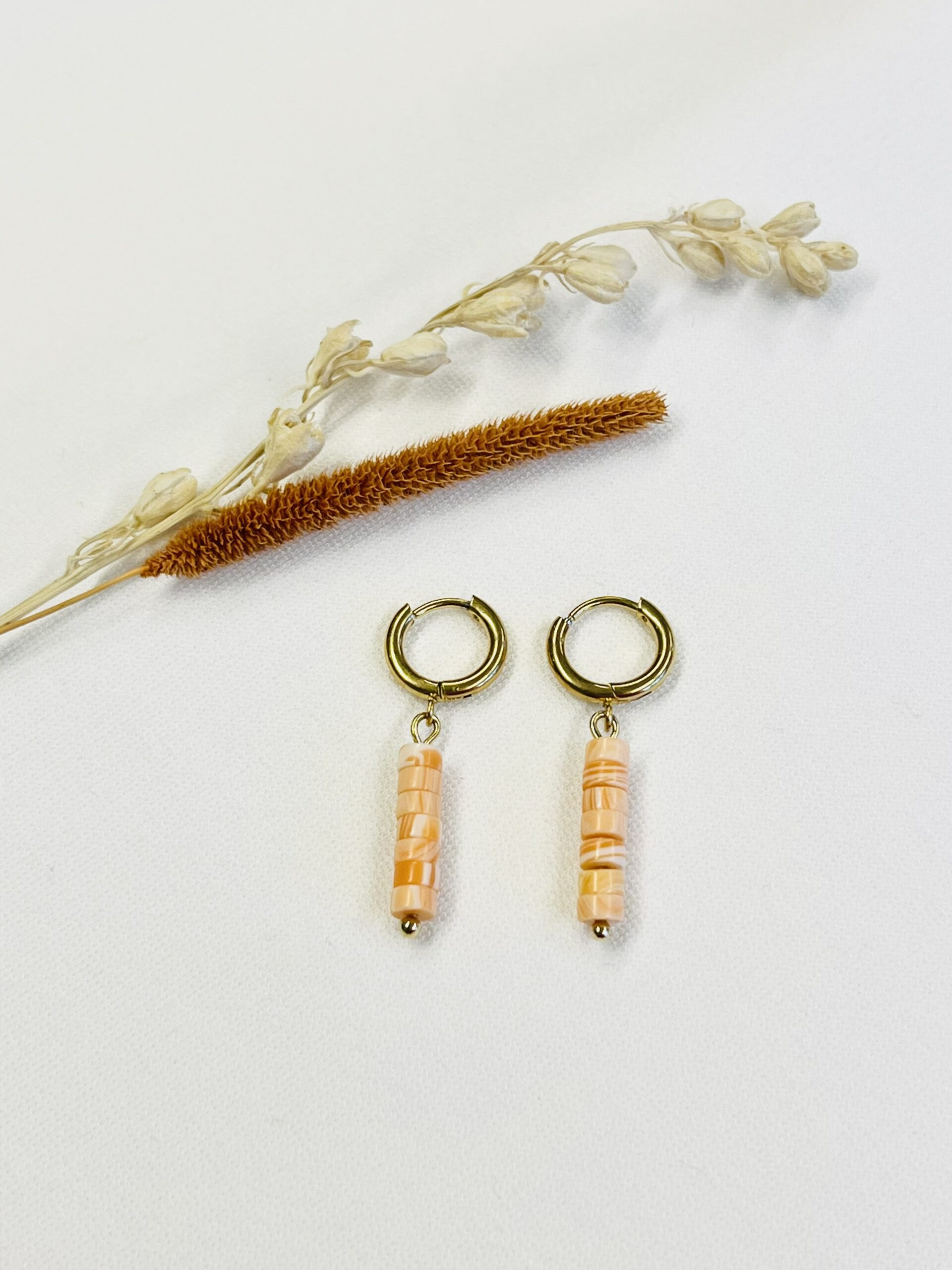 Deze RVS gouden creolen met oranje agaat disc kraaltjes van natuursteen zijn helemaal van deze tijd. Subtiel en toch modern door zachte kleur oranje in diverse schakeringen. Leuk om te combineren met een oorknopje als tweede oorbel. De creooltjes zijn 12mm rond. De gehele oorbel is 2,5 cm lang.