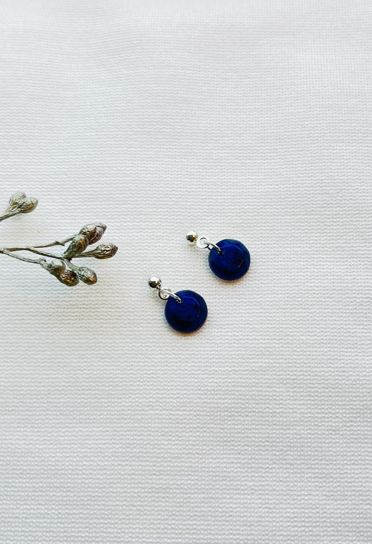 Mini ronde hangertjes van resin aan zilveren RVS oorknopjes. De totale lengte is 1,5 cm. De kleur van deze donkerblauwe oorbelletjes is echt mooi. Ze zijn licht van gewicht.